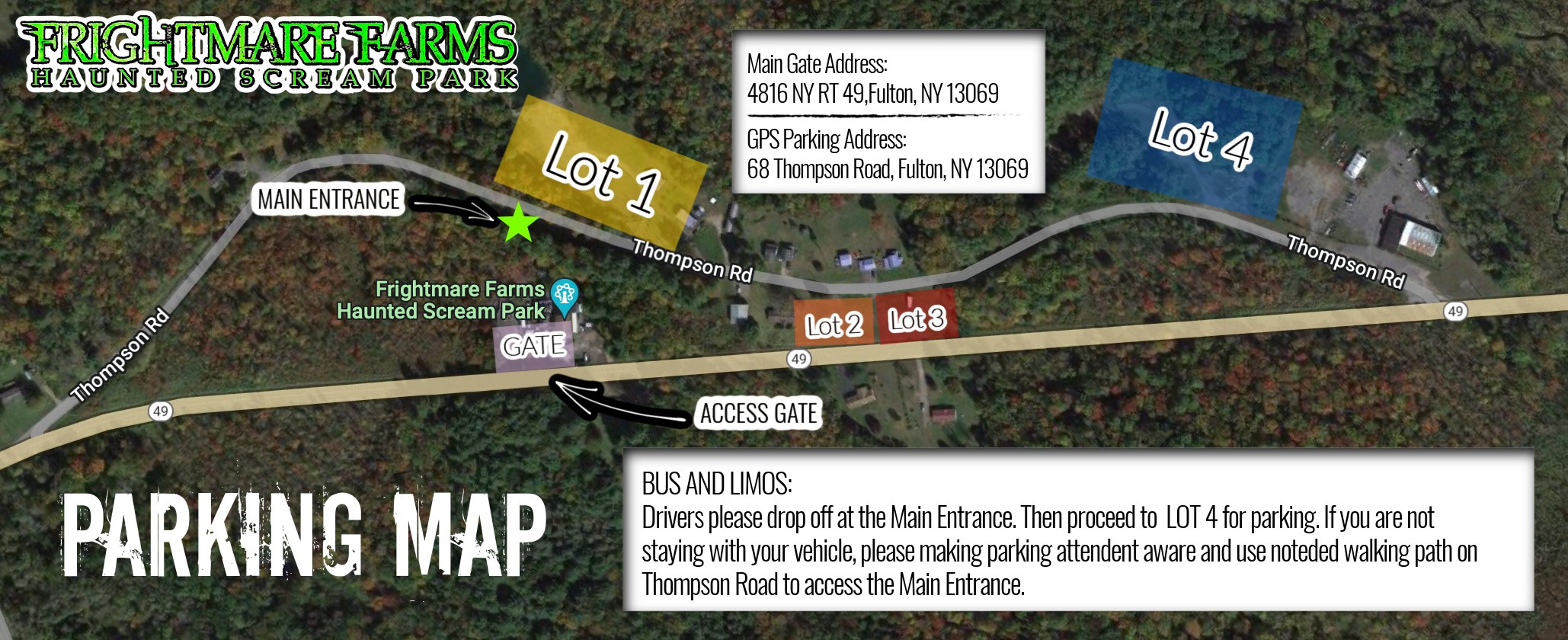 Main Parking for our attraction is located at 80 Thompson Rd, Palermo, NY 13069.